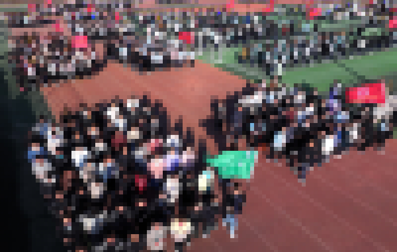 12月25日,來自民和縣官亭鎮(zhèn)土族中學(xué)的學(xué)生在民和縣城西高級中學(xué)的操場上跑操(無人機照片)。新華社記者 王浡 攝