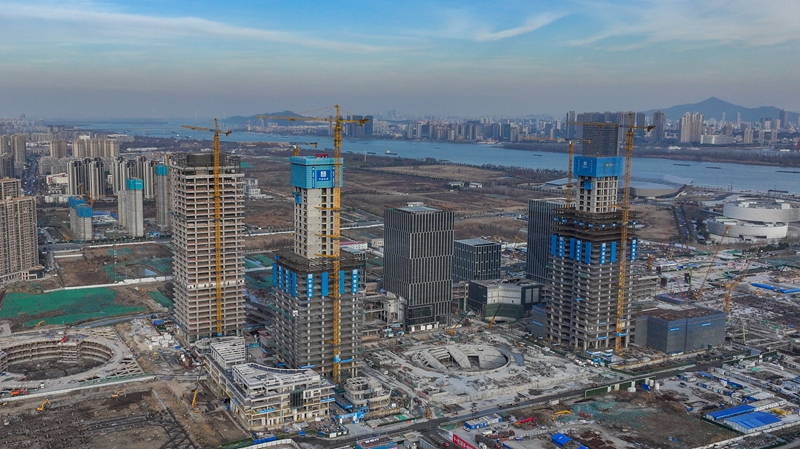 這是1月15日拍攝的江蘇省南京市江北新金融中心一期項目施工現(xiàn)場(無人機照片)。新華社記者 李博 攝