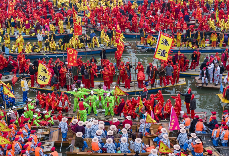當日,2024年泰州姜堰溱潼會船在江蘇省泰州市姜堰區(qū)溱湖國家濕地公園開幕,數(shù)百條各式各樣的船只和上萬名會船選手云集溱湖,飛篙走槳,奮勇爭先,呈現(xiàn)“千篙萬槳鬧溱湖 百舸爭流逐春潮”的壯觀場景,演繹歷久彌新的民俗畫卷。溱潼會船由南宋相沿至今,歷經(jīng)數(shù)百年傳承,被列入國家級非物質(zhì)文化遺產(chǎn)名錄。