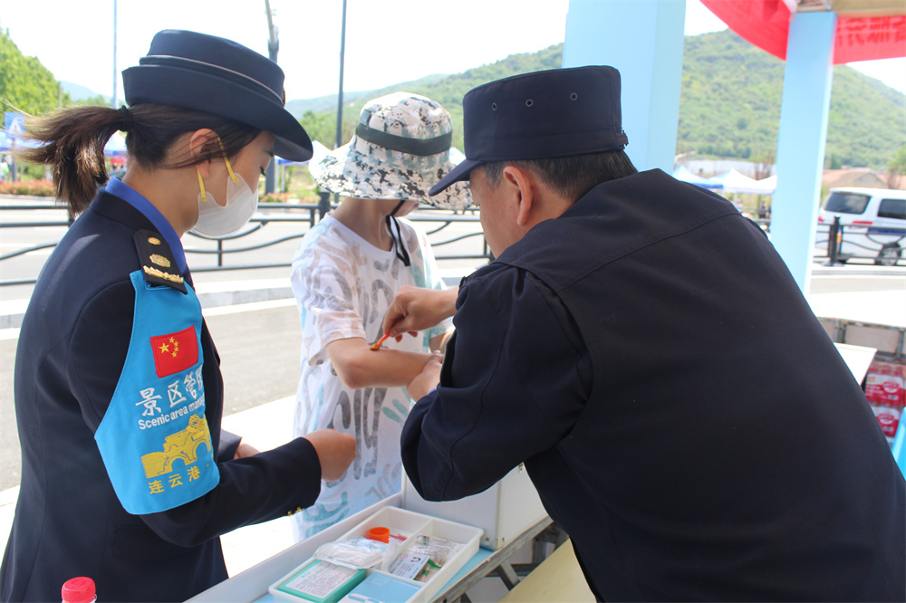 2024年5月3日,連云港市城市管理行政執(zhí)法支隊云臺山風(fēng)景名勝區(qū)大隊城管隊員為受傷游客提供醫(yī)療保障服務(wù),城管人員現(xiàn)場為游客進(jìn)行消毒、包扎處理,給予及時救治,得到過路游客和市民群眾的一致好評。(劉愛東 張茜)
