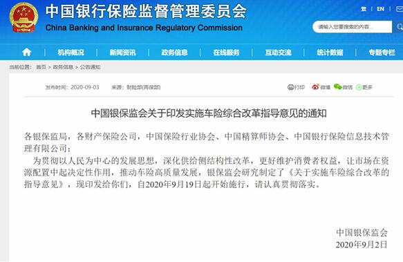 車險(xiǎn)改革將于9月19日正式實(shí)施