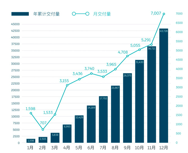 2020年后半程,蔚來(lái)越走越順,三季度交付12206輛,同比增長(zhǎng)154.3%,超出公司預(yù)期;四季度交付量繼續(xù)增長(zhǎng)達(dá)到17353輛,2020年全年蔚來(lái)總計(jì)交付43728輛,同比增長(zhǎng)112.6%。