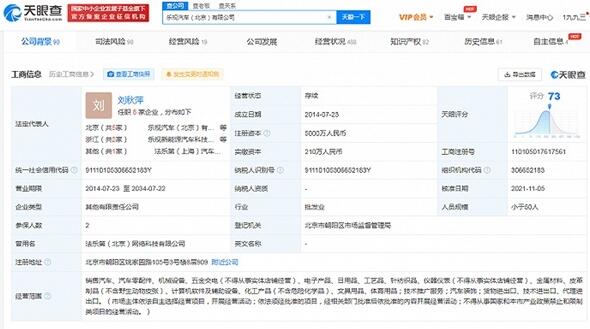 樂視汽車(北京)有限公司成立于2014年7月,法定代表人為劉秋萍。