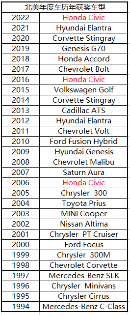 看看歷年獲獎(jiǎng)車型名單,相信各位也知道,最終獲獎(jiǎng)更多的還是歐美品牌旗下車型,思域三得大獎(jiǎng)有多么可貴,可想而知。