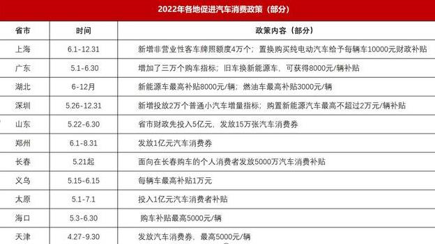 而山東、湖北、長春、太原、海口、天津、鄭州、義烏等省份或城市,均推出了相應(yīng)的購車補貼政策,尤其對購置新能源車型的補貼十分強勁,單車補貼最高可達1-2萬元。