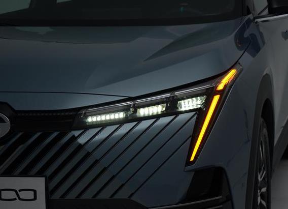前臉進(jìn)氣格柵運(yùn)用精益化的V字型陣列設(shè)計(jì),每一側(cè)有12條共24條進(jìn)氣簾,鑲嵌精致的鎢鋼色飾條,縫隙寬度按等差數(shù)列漸開分布,打造出十足的機(jī)甲風(fēng)格。一體式大燈集成了日行燈、位置燈、遠(yuǎn)光燈、近光燈和轉(zhuǎn)向燈等模塊,造型仿佛兩顆獠牙一般,具有很強(qiáng)的獨(dú)特性和識別性。