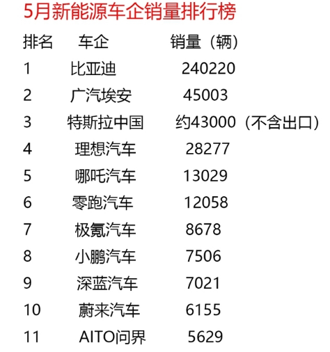解讀2023年5月新能源車企銷量排行