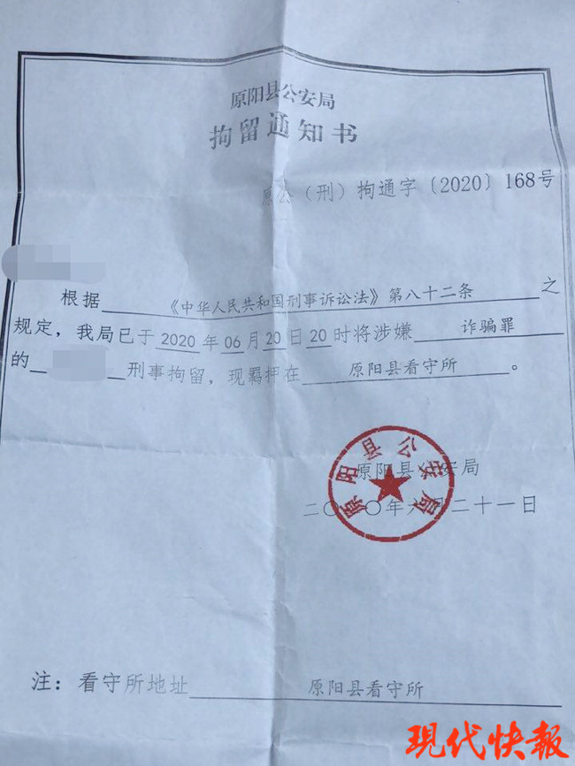 現(xiàn)代快報記者從這9名學(xué)生家長那里獲悉,他們都收到了來自河南省原陽縣公安局的刑事拘留通知書,涉嫌的罪名是詐騙罪。這些學(xué)生目前被羈押在河南原陽縣、封丘縣等不同的看守所。