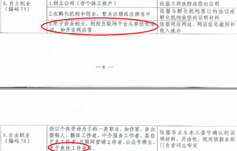 南都記者發(fā)現(xiàn),新的高校畢業(yè)生就業(yè)統(tǒng)計相關(guān)指標(biāo)的最大不同點在于“自主創(chuàng)業(yè)”和“自由職業(yè)”方面,自主創(chuàng)業(yè)的范圍加入了開設(shè)網(wǎng)店,自由職業(yè)的范圍加入了互聯(lián)網(wǎng)營銷工作者、公眾號博主、電子競技工作者。