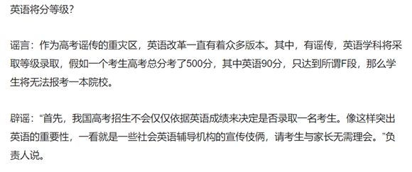 辟謠文章: “英語”要退出中、高考,是“謠言”還是“事實”?