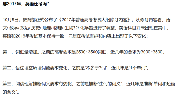 關(guān)鍵詞:考試改革、高考大綱、取消英語