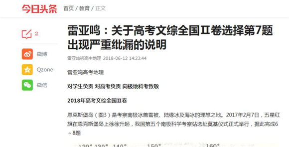 辟謠文章:關(guān)于高考文綜全國II卷選擇第7題出現(xiàn)嚴(yán)重紕漏的說明