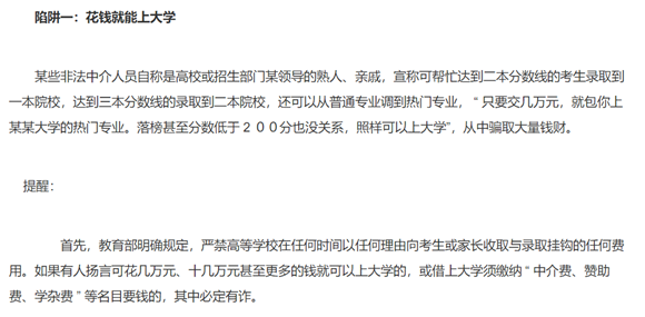 關(guān)鍵詞:中介、熟人、交錢、包上大學(xué)