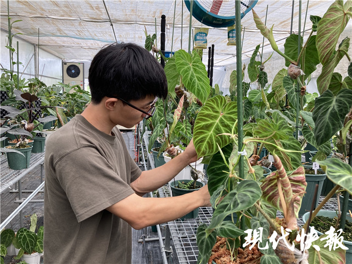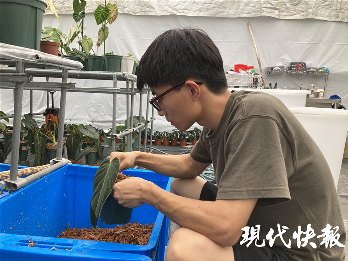 (記者 于露 白雪銀 文/攝)火鶴后、鹿角蕨、云母蔓綠絨……走進(jìn)孔霄鵬的植物基地,一排排花架上的綠色葉片恣意舒展,如同一所小型的植物園,孔霄鵬幾乎每天都待在這里打理植物。大學(xué)畢業(yè)兩年后,他在一些國(guó)內(nèi)較為罕見(jiàn)的熱帶植物品種里看到了商機(jī),于是辭職創(chuàng)業(yè)。每日與植物相伴,讓他感覺(jué)舒適又自由,接下來(lái)他還想打造品牌,讓他的產(chǎn)品以多樣的方式走進(jìn)大家的日常生活。