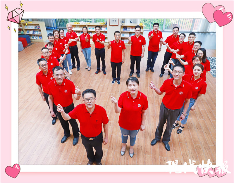 南京東山外國(guó)語(yǔ)學(xué)校送考老師穿紅裝組成“愛心”形圖案,寓意紅紅火火,鴻運(yùn)當(dāng)頭,愿孩子們帶著老師們的溫暖愛心和祝福,自信奔赴考場(chǎng)。老師們著黃色衣服組成“V”形圖案,祝福學(xué)子們走向勝利,創(chuàng)造輝煌。
