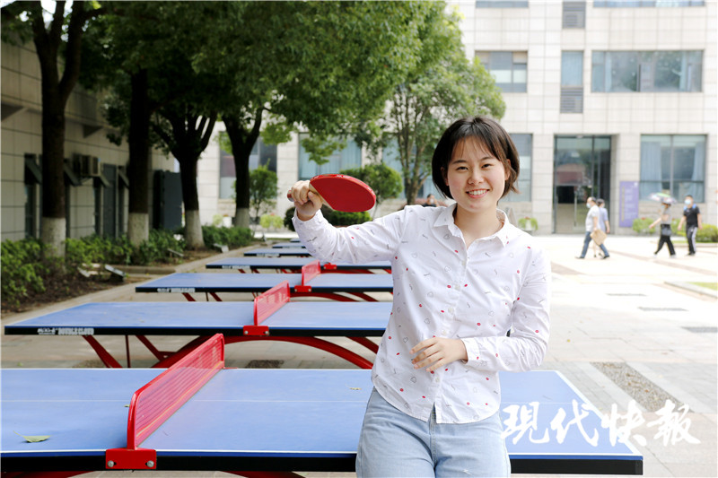 走到臺(tái)下,18歲的楊程被家長(zhǎng)們團(tuán)團(tuán)圍住,變身“招生官”。當(dāng)聽(tīng)說(shuō)她不上輔導(dǎo)班,眼睛也只是稍有些近視,家長(zhǎng)們都覺(jué)得不可思議。“其實(shí)不上輔導(dǎo)班,可以有自己的時(shí)間去有針對(duì)性的學(xué)習(xí)。”楊程自有自己的學(xué)習(xí)節(jié)奏。為什么眼睛那么好?那是因?yàn)闂畛堂刻於紙?jiān)持運(yùn)動(dòng) ,特別是乒乓球有臺(tái)子就要打一陣子。校園里那個(gè)一手夾著小說(shuō),一手夾著乒乓球拍的女生,就是楊程。