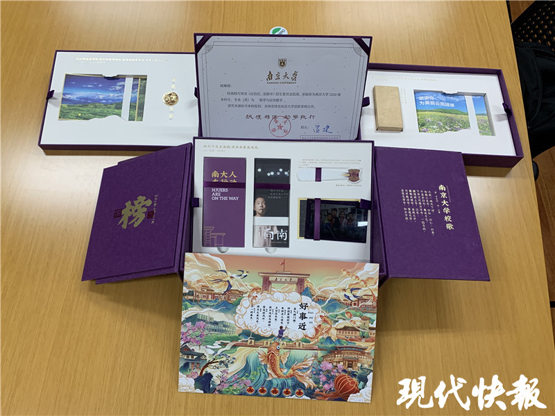 典雅的紫色禮盒、文藝的《好事近》詩句、金邊玫瑰為紀念品...... 前段時間,南京大學“神仙錄取通知書”火了。除了樣式精美,今年南大招辦與創(chuàng)新創(chuàng)業(yè)與成果轉(zhuǎn)化辦公室合作,開啟“鮮花帶貨”,為美麗云南帶貨,引來一大撥網(wǎng)友圍觀打call。“之前就在網(wǎng)上看到,說南大錄取通知書是個禮盒,里面東西非常豐富,雖然知道這些,但今天現(xiàn)場看到那一刻,還是覺得很開心很激動!”周琳琦說。