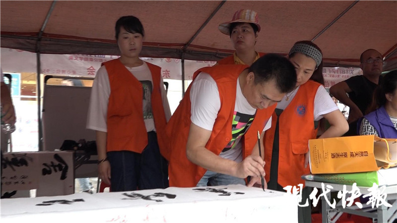 “我買了兩百元的愛心券,準(zhǔn)備購買自己心儀的商品,同時也獻(xiàn)上自己的一份愛心。”東臺中學(xué)的學(xué)生沈望在媽媽的陪同下在挑選書籍。在現(xiàn)場,東臺本地的書畫名家現(xiàn)場揮毫潑墨,創(chuàng)作書畫作品,進(jìn)行拍賣,所得款項(xiàng)全部捐贈給東臺市義工聯(lián)合會,用于定向資助寒門學(xué)子完成學(xué)業(yè)。主辦方還為捐錢捐物的愛心企業(yè)和商家頒發(fā)了“愛心單位”牌匾。