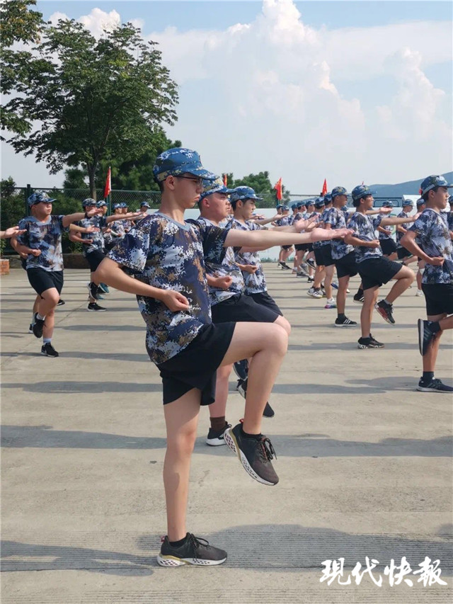 8月15日清晨,新生們奔赴南京大金山國防園中學(xué)生軍訓(xùn)基地,換上迷彩服的少年們,有了屬于自己團(tuán)隊(duì)的旗幟。被子如何疊,盆怎么擺,鞋子怎么放,一番訓(xùn)練之后,凌亂的宿舍瞬間整潔干凈,每張床上都有著一塊可愛的“豆腐塊”。緊接著,教官指導(dǎo)全體新生進(jìn)入訓(xùn)練階段,新生們在一次次的練習(xí)中做到了快速、高效地集合、離散,立正、稍息、向前走,小小少年已初具新兵模樣。男生們在教官的指導(dǎo)下努力學(xué)習(xí)軍體拳,女生認(rèn)真專注地學(xué)習(xí)數(shù)字方陣操。晚間,他們在月光下進(jìn)行晚訓(xùn),用汗水和疲憊見證了一整天集訓(xùn)的辛苦。
