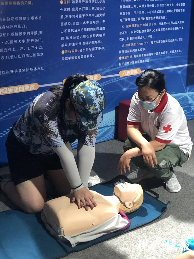 經(jīng)過兩天的軍訓(xùn),同學(xué)們已經(jīng)適應(yīng)了軍訓(xùn)的生活。進(jìn)入第三天,大家已經(jīng)漸入佳境。集合、看齊、立正、整理著裝、跑步走,在陽光的照耀下、在高溫的籠罩中,同學(xué)們依然昂首挺胸,頂天立地,以挺拔的軍姿、整齊的方隊(duì)、鏗鏘的步伐開始新一天的訓(xùn)練。男生們溫習(xí)了昨日學(xué)習(xí)的軍體拳,動(dòng)作剛勁有力;女生們的數(shù)字方陣愈發(fā)熟練,她們整齊劃一、靈動(dòng)輕盈。下午,玄武區(qū)紅十字會(huì)開展戰(zhàn)地救護(hù)培訓(xùn)。來自紅十字會(huì)的老師們介紹了創(chuàng)傷的基本知識(shí)和應(yīng)急救護(hù)的目的:最佳時(shí)機(jī)、最佳地點(diǎn)、最大努力、挽救生命、減輕傷殘……據(jù)悉,軍訓(xùn)將持續(xù)到8月21日。