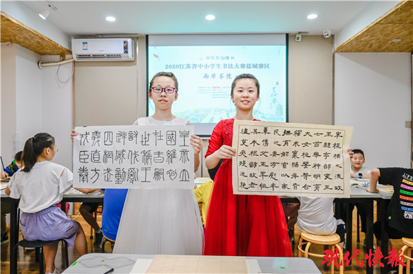 書(shū)法大賽走進(jìn)鹽城雨華書(shū)院 雙胞胎姐妹現(xiàn)場(chǎng)秀書(shū)法