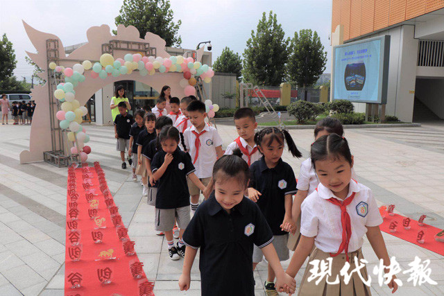 (記者 舒越/文)告別夏日蟬鳴,9月1日,萌娃們背起書包上學(xué)啦。穿上七彩文化衫、登上“和諧文明號(hào)列車”、跟著小哥哥小姐姐“打卡”校園......一起看看南京各大小學(xué)如何花式迎接“萌新”吧!