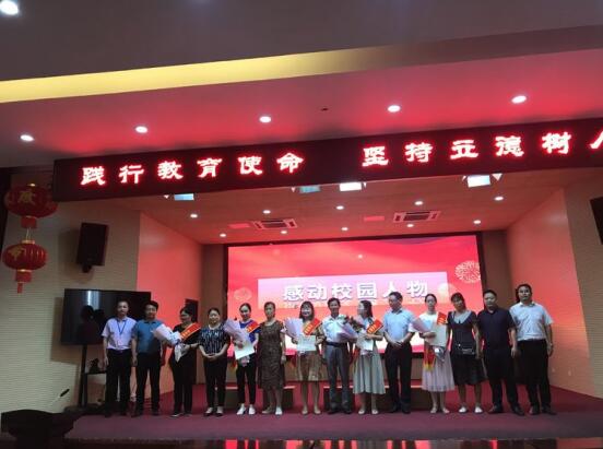 獲獎教師與家屬同臺領(lǐng)獎,歷屆感動校園人物獲獎代表、領(lǐng)導(dǎo)班子代表、受表彰對象家屬代表、學(xué)生家長代表作為嘉賓為此次獲獎老師頒獎。