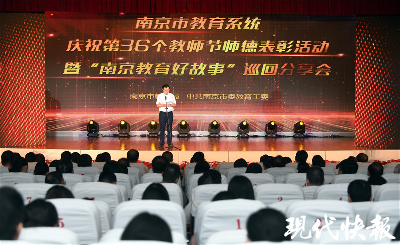 (記者 舒越/文 施向輝/攝)9月9日,慶祝第36個(gè)教師節(jié)表彰活動(dòng)暨“南京教育好故事”巡回分享會(huì)在南京外國(guó)語學(xué)校報(bào)告廳舉行。