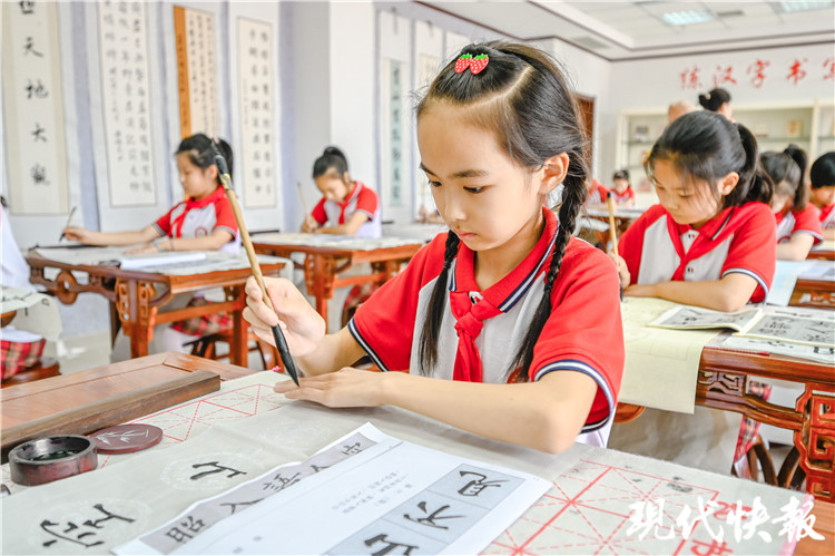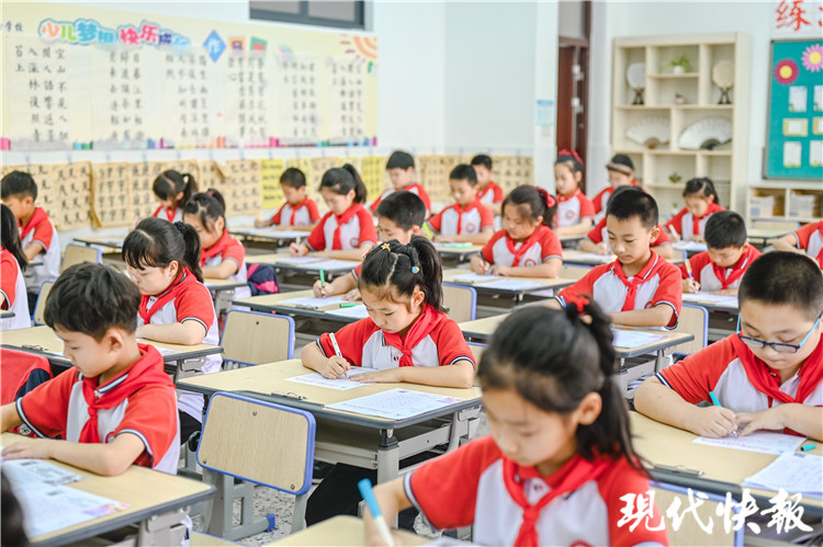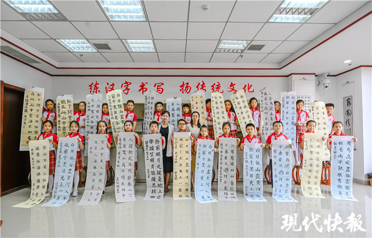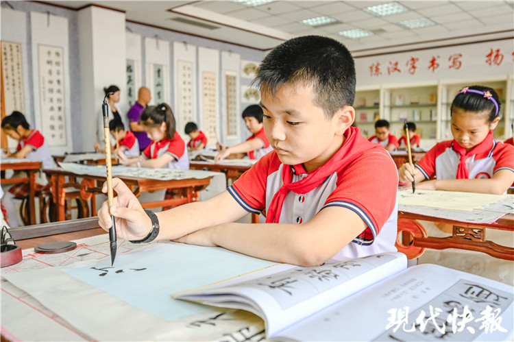 “她的堅(jiān)韌度和專注度比其他孩子要強(qiáng),這是練字的孩子最明顯的變化。”在一旁指導(dǎo)的老師卞曉漫和孫晨說,學(xué)校對書法非常重視,一二年級都有寫字課,三年級以上開始開設(shè)書法課。此外,中午在學(xué)校吃飯的孩子,每天午飯后還要再練字半小時(shí)。