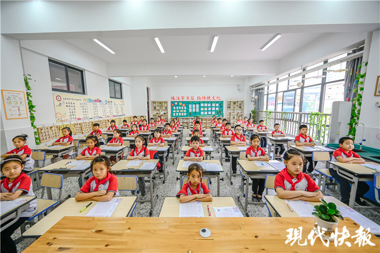 提按轉(zhuǎn)折,頓挫成峰,專注的字,專注的眼神……當(dāng)天,現(xiàn)代快報(bào)記者在現(xiàn)場看到,學(xué)校兩間書法教室坐滿了學(xué)生,他們有的是參加軟筆比賽,有的用硬筆書寫。教室里,校長祝成榮和幾名老師有序地指導(dǎo)著,提醒學(xué)生端正握筆,正確坐姿。