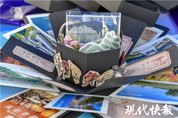 打開驚喜盒的第一層“致未來”,里面是給新生的大學(xué)四年的學(xué)業(yè)規(guī)劃、未來的職業(yè)等內(nèi)容的規(guī)劃書,學(xué)生可以用四年的時(shí)間來填滿空白處。第二層“致經(jīng)典”,里面有學(xué)院給新生推薦的閱讀書籍《中國(guó)文化史》《鄉(xiāng)土中國(guó)》《理想國(guó)》《疾病改變歷史》等書目及其簡(jiǎn)介和一張讀書卡。第三層打開后,則是令人賞心悅目的校園經(jīng)典打卡美景。第四層里填滿了高年級(jí)學(xué)長(zhǎng)手寫給新生的心里話“夢(mèng)想就是夢(mèng)里想的,醒來就能做的事。”“什么都不做,才會(huì)來不及。”揭開最上面的一層,有干花、花種和一張“南京站”到“未來站”的入學(xué)車票。