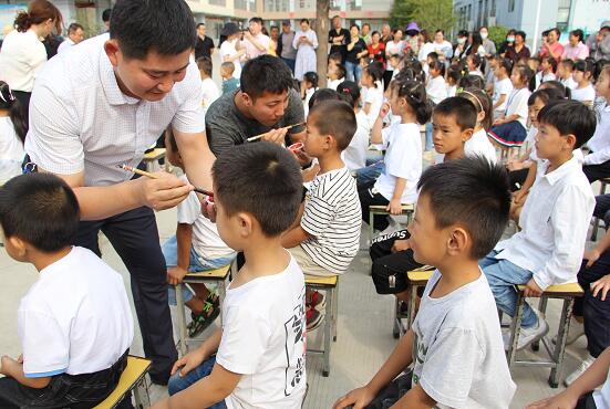 “朱砂啟智”,意為開啟智慧,以此寄托美好的愿望。學(xué)校領(lǐng)導(dǎo)和老師們用紅色的朱砂在學(xué)子們的額頭正中點(diǎn)上紅痣,從此眼明心亮,好讀書、讀好書、讀書好,衷心祝愿孩子們在以后的學(xué)習(xí)中勤奮努力,志存高遠(yuǎn)。