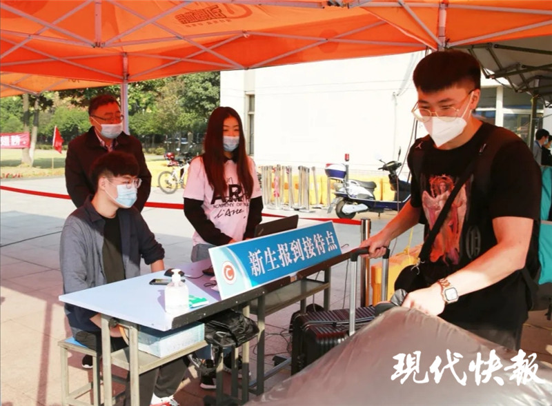 走進校門,歡迎新生的標語隨處可見,向校園的新主人送上一聲問候,讓新生們感覺十分親切。志愿者們早早出發(fā),有的深夜值班,到火車站、機場等待將新生安全、順利地接送到報到現場。校園里,還有貼心的擺渡車和行李車,檢測體溫查驗“蘇康碼”,簡單辦理手續(xù)后,新生們就算完成入學了。