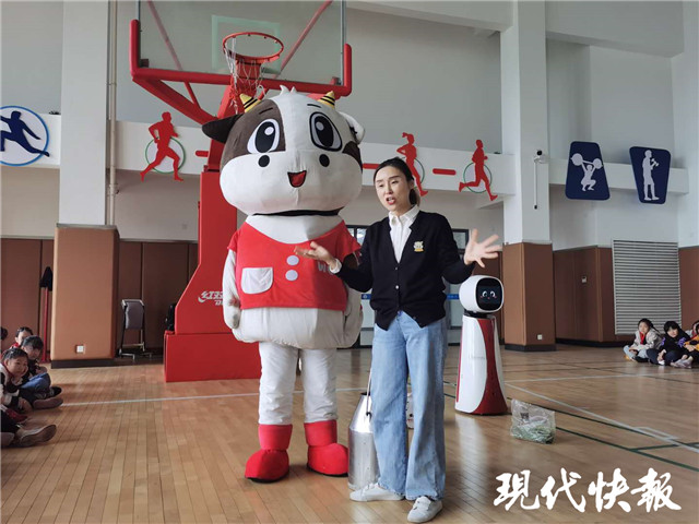 (記者 謝喜卓 黃艷 文/攝) 10月21日,現(xiàn)代快報(bào)網(wǎng)紅機(jī)器人小主播快寶和現(xiàn)代快報(bào)小記者領(lǐng)隊(duì)秋晨哥哥一起,走進(jìn)了南京市小行小學(xué),與四年級(jí)近200名小朋友,共同開(kāi)啟了特殊的“新鮮教育”課堂。“牛奶姐姐”蔡琴還特意帶來(lái)了一頭“小奶牛”,和孩子們一起學(xué)習(xí)健康小知識(shí)。