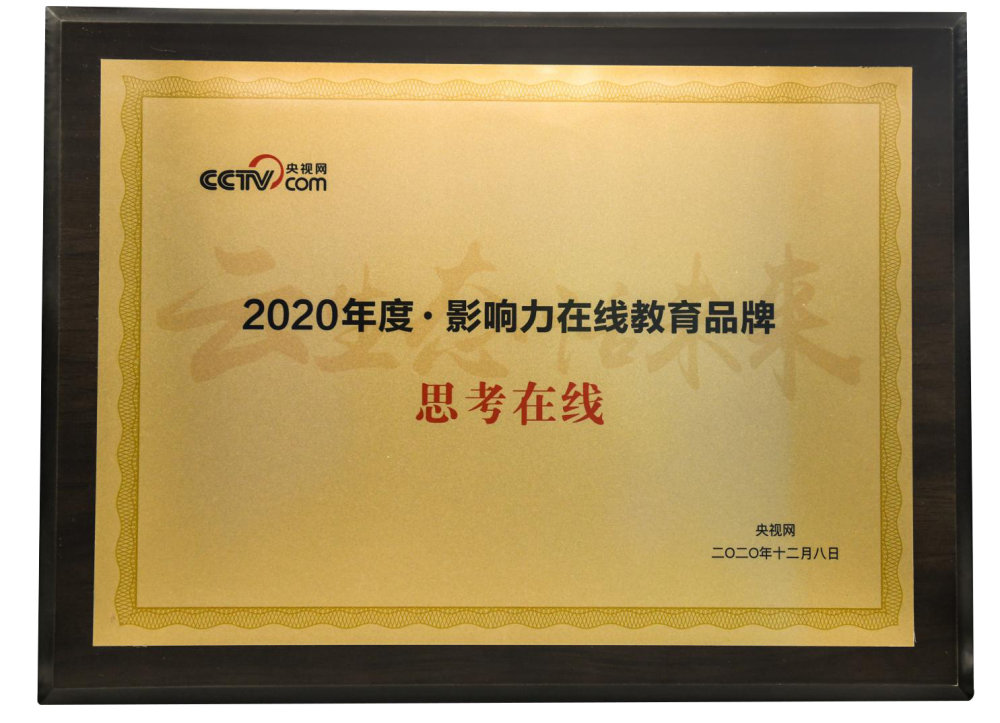 思考在線獲頒央視網(wǎng)“2020年度影響力在線教育品牌”獎項(xiàng)
