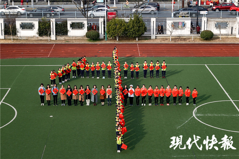 2月22日上午8點20分,一場別開生面的開學典禮在蘇州市金閶實驗小學的操場上舉行,百名師生齊上陣拼成了一個“牛”字,每個人手上拿著一幅自己親手寫的福字,從高處俯看,一個超級大的“福牛”喜氣盈盈。