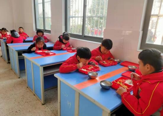 開學初,鹽城市濱??h界牌鎮(zhèn)中心小學的校領導了解到,很多家長因在外地過年,擔心自己的孩子上學吃飯難問題。學校校委會隨即研究決定,在學校雅思樓上設立兩個教室作為留守兒童臨時用餐點(學校的餐廳正在建設中)。增設了35張小飯桌,供70名留守兒童中午就餐使用。為了讓孩子們吃上放心的飯菜,學校與縣成業(yè)餐飲公司達成協(xié)議,每天中午準時配送飯菜,確保天天不同菜,營養(yǎng)足夠豐富。