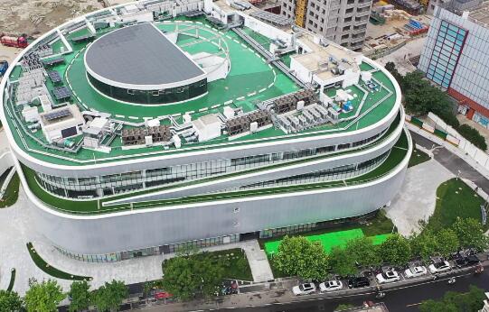 新宮位于馬臺(tái)街與童家巷西沿交叉西北角,遠(yuǎn)遠(yuǎn)望去,白色的玻璃幕墻、柔和的外墻線條,圓形的陽(yáng)光房頂,整個(gè)建筑好似一條輕柔活潑的飄帶,既時(shí)尚又富有科技感。