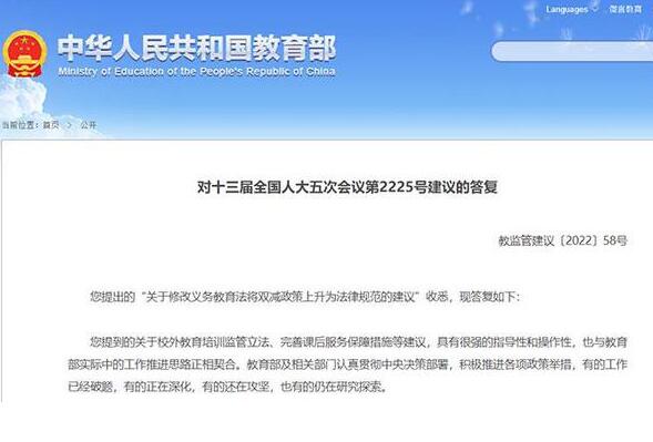 答復(fù)表示,教育部已啟動了校外培訓(xùn)立法研究,重點研究理順校外培訓(xùn)立法與現(xiàn)有法律、法規(guī)、政策的關(guān)系,對相關(guān)實踐進(jìn)行總結(jié),對一些難題(如怎樣確定校外培訓(xùn)立法的定位,應(yīng)該以什么層級、形式、程序開展立法等)進(jìn)行深入研判,對一些關(guān)鍵點(如對校外培訓(xùn)從業(yè)人員、材料課程、培訓(xùn)收費的管理舉措中,有哪些措施亟須上升到立法層面予以解決等)進(jìn)行實驗探索,目前已起草了校外培訓(xùn)監(jiān)督管理條例初稿,正在加快推進(jìn)。
