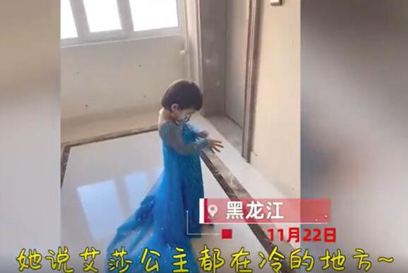 視頻記錄了一個(gè)3歲的小姑娘,在天氣僅有0度的情況下,非要穿單薄的公主裙出門,還一個(gè)勁地講著道理:“動(dòng)畫片里的公主,就是在冷的地方!”