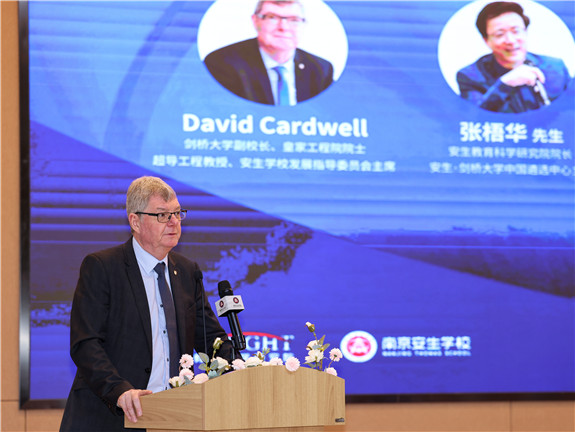 闊別三年,重啟中國巡回演講!2月25日下午,劍橋大學(xué)副校長、英國皇家工程院院士、世界著名超導(dǎo)專家David Cardwell先生,現(xiàn)身由安生教育科學(xué)研究院主辦、南京安生學(xué)校承辦的“成功的教育——成長與規(guī)劃”論壇,與國內(nèi)知名教育專家、劍橋兄弟的媽媽、新晉劍橋本科學(xué)生及優(yōu)秀學(xué)生代表、南京的中小學(xué)家長一起,面對面探討從小開始的教育規(guī)劃問題。