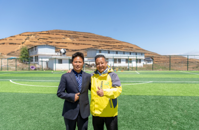 視角來到室外,由中國(guó)女足援建的標(biāo)準(zhǔn)化足球場(chǎng),綠意盎然,宛如云端上的一顆綠寶石。球場(chǎng)上,支教老師崔老師正帶著象寶足球隊(duì)火熱訓(xùn)練中,運(yùn)營(yíng)團(tuán)隊(duì)和愛心人士有幸在一旁全程觀摩。