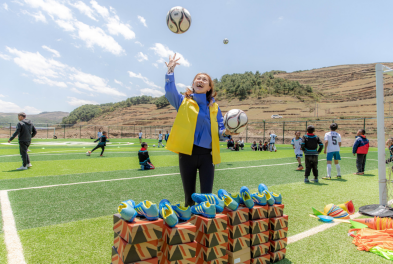 石薇薇女士:很高興能來到瓦吾小學(xué),希望我們倉(cāng)促之下準(zhǔn)備的小小球鞋、足球,能對(duì)你們實(shí)現(xiàn)足球夢(mèng)想有所幫助!看到你們的笑容,我真切感受到自己在做一件有意義的事。希望以后我可以帶著自己的孩子,再次來與你們相見!