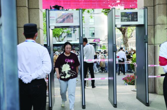 記者發(fā)現(xiàn),今年南京一中考點(diǎn)門口增設(shè)了兩個安檢門,考生們需穿過安檢門無異常才能進(jìn)入考場。“今年與往年最大的不同是增設(shè)了一道安檢門,防止將手機(jī)帶進(jìn)考點(diǎn),往年是禁止將手機(jī)帶入考場。”南京市第一中學(xué)考點(diǎn)副主任高磊介紹,按照要求,考點(diǎn)把防范手機(jī)作弊作為今年高考安全的重中之重,為了進(jìn)一步守住考場安全的“主陣地”,一方面,加強(qiáng)對考生的宣傳教育和要求,每位考生都簽訂了不攜帶手機(jī)進(jìn)入考點(diǎn)的承諾書。另一方面,加強(qiáng)技術(shù)防備,增設(shè)安檢門,設(shè)立復(fù)檢區(qū)??忌M(jìn)入考點(diǎn)必須先經(jīng)過安檢門檢查,把好第一道關(guān),讓手機(jī)“帶不進(jìn)”。南京一中考點(diǎn)配置2個智能安檢門,通過安檢門時若發(fā)現(xiàn)異常,考生在復(fù)檢區(qū)由專人手持金屬探測器對考生進(jìn)行復(fù)檢后,再次通過智能安檢門檢查合格后,方可進(jìn)入考點(diǎn)。