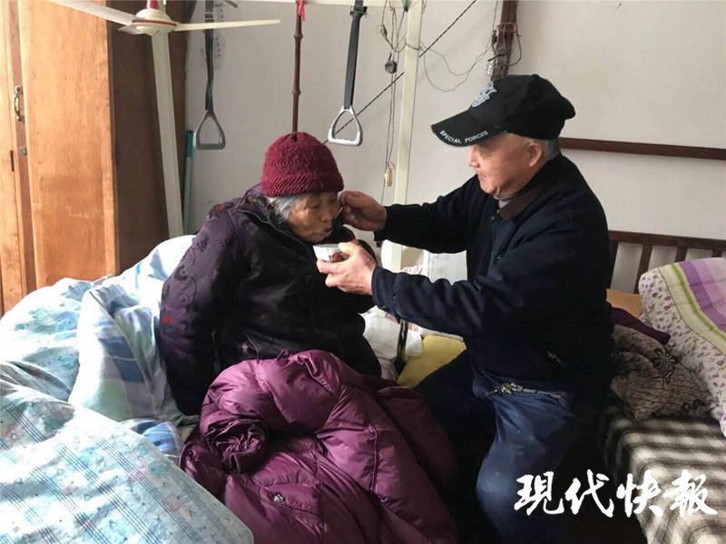 蔣偉達(dá)說,老人臥床這幾年,生活完全不能自理,吃飯要喂,洗澡、大小便都需要人。于是,兩個人就一起商量照顧老人的事。許中明退休了,還在做保潔的工作。兩人就決定,蔣偉達(dá)負(fù)責(zé)白天照顧老人,許中明負(fù)責(zé)晚上照顧。