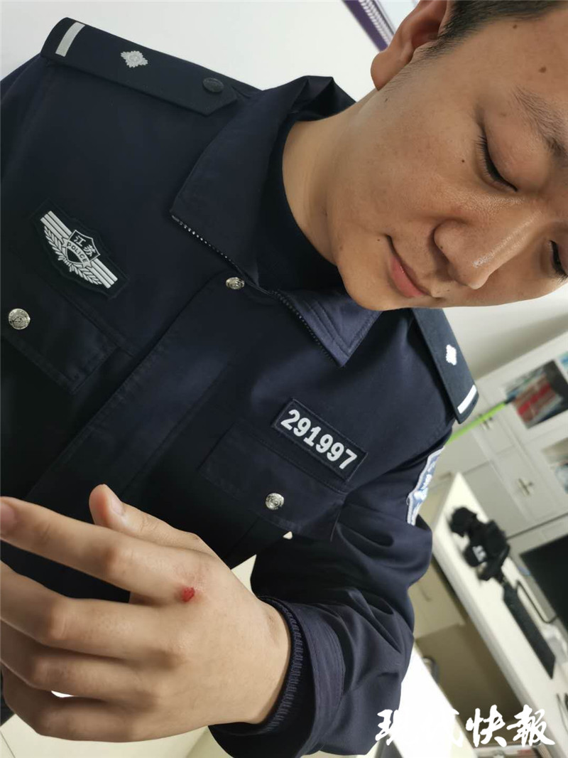 事后,民警得知,女孩今年才13歲,因?yàn)楹湍赣H發(fā)生口角,情緒一激動(dòng)便爬上頂樓要輕生。當(dāng)晚,女孩已被爺爺奶奶接走,目前情況穩(wěn)定。救人之后,費(fèi)志鵬感到自己的手很疼,到警務(wù)站一看才發(fā)現(xiàn)救人時(shí)手磨破了。