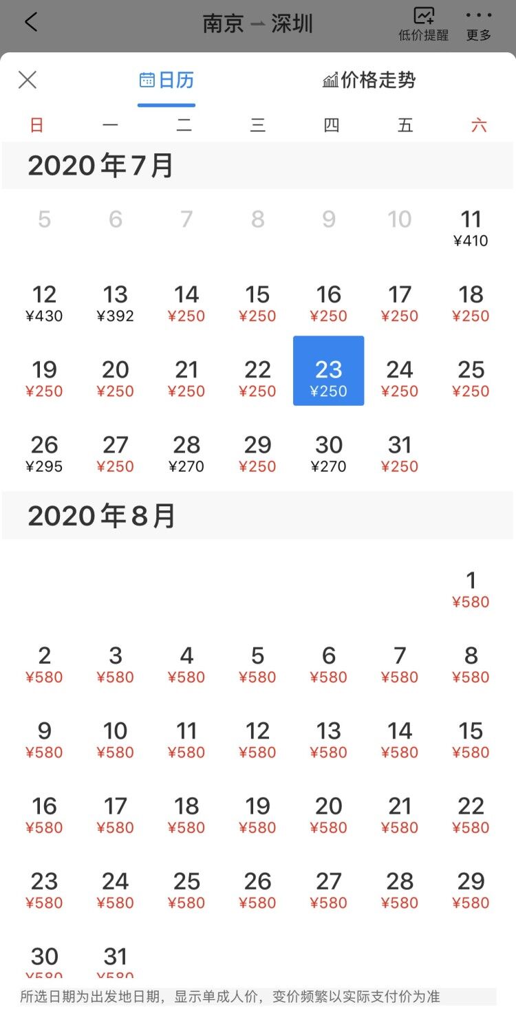 截至7月11日16:00,某旅行平臺(tái)顯示,8月,南京飛深圳票價(jià)最低580元,與7月最低的250元相比,票價(jià)翻了一倍多;南京飛西安票價(jià)大多455元,而7月票價(jià)大多234元,相差近一倍;南京飛三亞票價(jià)600至894元不等,而7月票價(jià)420元。