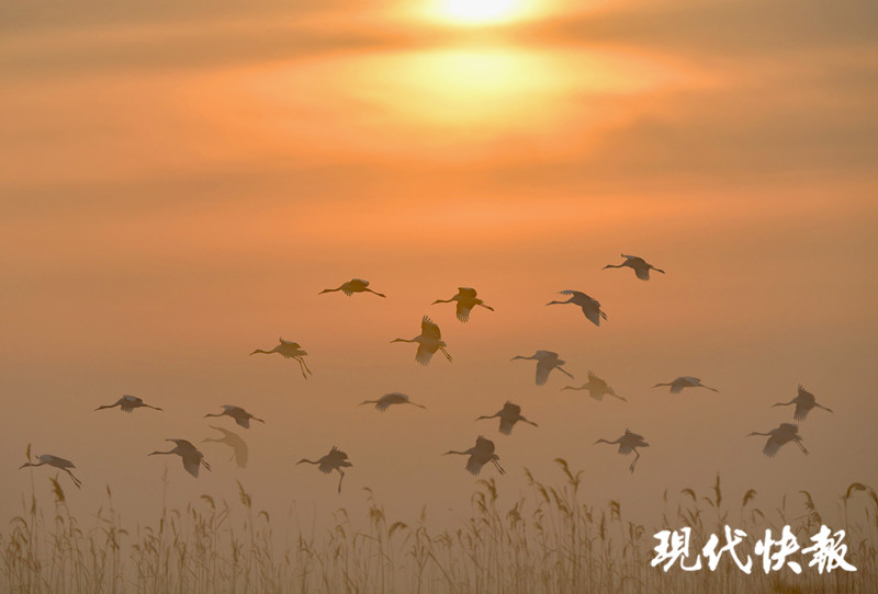 “丹頂鶴一般會從11月份一直停留到次年的3月份。整個冬天,它們在這里呼朋喚友、自由翱翔,最大的集群可以達(dá)到500只,成了保護(hù)區(qū)冬天的獨特景觀。”鹽城國家級珍禽自然保護(hù)區(qū)管護(hù)站站長陳國遠(yuǎn)說,遷徙時,丹頂鶴會途經(jīng)山東東營、遼寧盤錦、吉林向海等地,沿線飛過2000多公里,抵達(dá)黑龍江、俄羅斯繁殖。