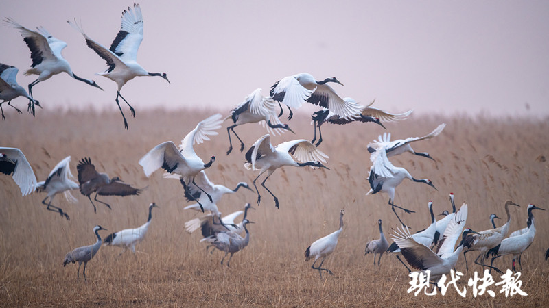 (記者 王菲 通訊員 孫華金 陳國遠(yuǎn)/攝)春回大地,氣溫回升。2月下旬,在鹽城國家級珍禽自然保護(hù)區(qū)越冬的丹頂鶴,已經(jīng)收拾好“行囊”,陸續(xù)開啟北遷之旅。