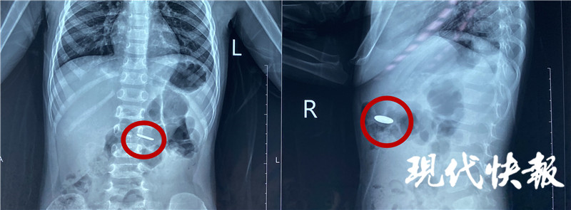 “當時拍了片子發(fā)現電池在胃部,消化內科的醫(yī)生及時給他做了胃鏡檢查,這個電池比較小,已經快速排空進入了小腸,胃鏡沒有發(fā)現電池。后來又拍片檢查,確認電池已經進入小腸,就轉入外科進行手術治療。”淮安市婦幼保健院小兒外科主治醫(yī)師顧春暉說。